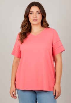 Every top we carry is designed to fit and complement full figures. They have features that slim and sculpt while still being comfortable and long-wearing. Our plus size short sleeve tops are available in size 10 to 44 and come in a variety of styles to suit your personality and taste.