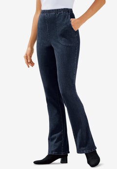 Our pull-on plus size bootcut jeans include a wide waistband that provides you with reliable coverage that lasts. Throw on some booties for a day-to-day ensemble or match them with cowboy boots for a fun night-out outfit.