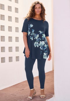 We have a tunic for every season as well. From lightweight tees to snuggly sweaters, you’ll always find a stylish top to pair with your leggings. Our collection of “Perfect” tunics is a wonderful place to start. It includes short, long sleeve, and three-quarter sleeve tunics that can be layered or worn on their own.