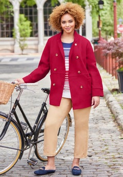Searching for a jacket that you can count on to support your larger bust? We suggest going for an open-front style. They’re roomy and comfortable, but won’t leave you looking boxy. Longer coats are also especially flattering on your figure, creating the illusion of a more narrow frame.