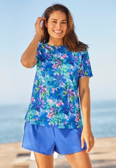 Prepare for a dip in the pool or the ocean with one of our chlorine-friendly tees. Made to wick moisture and resist bagging, these relaxed plus size swim shirts are built for your next swimming session. With UPF 50+ fabric, you’ll stress less about sun damage with our crewnecks. Or, check out our blouson swim tees that deliver an optimum blend of airiness and elegance.