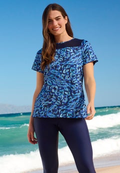 Prepare for a dip in the pool or the ocean with one of our chlorine-friendly tees. Made to wick moisture and resist bagging, these relaxed plus size swim shirts are built for your next swimming session. With UPF 50+ fabric, you’ll stress less about sun damage with our crewnecks. Or, check out our blouson swim tees that deliver an optimum blend of airiness and elegance.