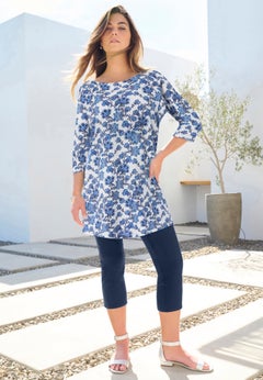Our Perfect V-Neck Three-Quarter Sleeve Tunic has the word "perfect" in its name for a reason. This flattering, fashionable, and comfy top is a great casual staple. We think you'll enjoy the pure cotton material and laid-back fit. Plus, you can choose from more than a dozen colors in regular and petite sizes.