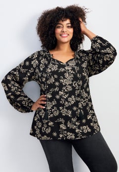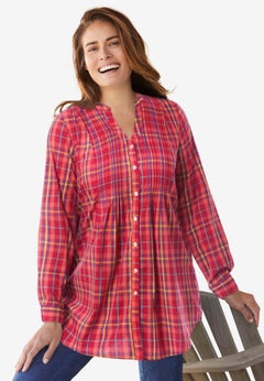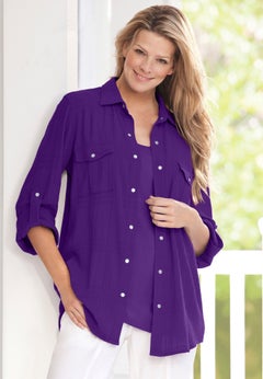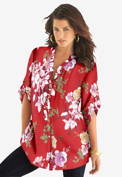 When we go big, we go really big! With over 700 plus size long sleeve shirts and blouses designed for sizes S to 6X (12-44), there’s a style for everyone. You could buy and wear a new shirt everyday for nearly two years! Shop knit or woven fabrics, embellished with lace, eyelet, fringe or pleating. Pick prints that are lively: think basic plaids, stripes or polka dots and trendy florals or abstracts. From a simple button-down to a dressy tunic, our plus size long sleeve shirts and blouses will take you stylish places you never imagined!