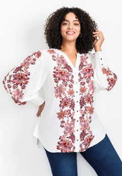 When we go big, we go really big! With over 700 plus size long sleeve shirts and blouses designed for sizes S to 6X (12-44), there’s a style for everyone. You could buy and wear a new shirt everyday for nearly two years! Shop knit or woven fabrics, embellished with lace, eyelet, fringe or pleating. Pick prints that are lively: think basic plaids, stripes or polka dots and trendy florals or abstracts. From a simple button-down to a dressy tunic, our plus size long sleeve shirts and blouses will take you stylish places you never imagined!