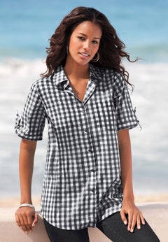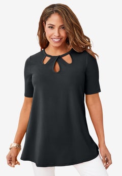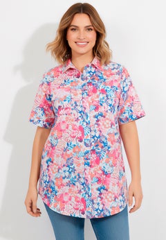 Every top we carry is designed to fit and complement full figures. They have features that slim and sculpt while still being comfortable and long-wearing. Our plus size short sleeve tops are available in size 10 to 44 and come in a variety of styles to suit your personality and taste.