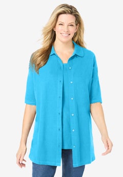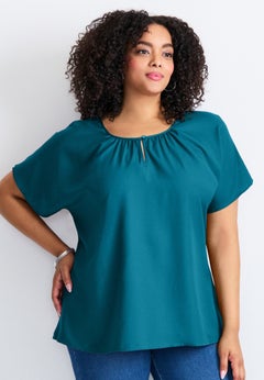 Every top we carry is designed to fit and complement full figures. They have features that slim and sculpt while still being comfortable and long-wearing. Our plus size short sleeve tops are available in size 10 to 44 and come in a variety of styles to suit your personality and taste.