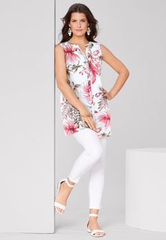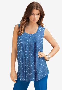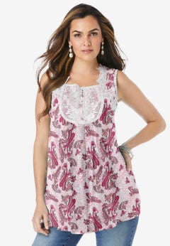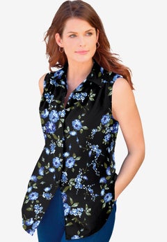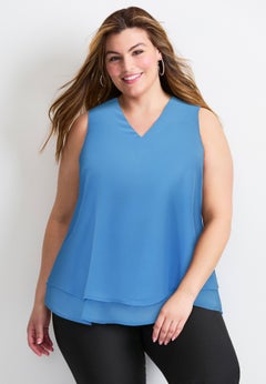 With close to 200 plus size sleeveless shirts and blouses sizes S to 6X (12-44), there’s a flattering style for every body! Discover our brands’ wide range of plus size tops. Click on sexy strappy camis, basic or trendy tanks, sleeveless tunics or embellished dressy tops. Shop colorful solids or pull from popular prints. These are the plus size tanks that fit your curves and your lifestyle, fulfilling your fashion needs. Top a cool pair of distressed plus size jeans, sleek leggings or an on-point skirt and be ready for a summer’s day at the office or an evening out with friends.