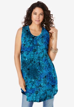 With close to 200 plus size sleeveless shirts and blouses sizes S to 6X (12-44), there’s a flattering style for every body! Discover our brands’ wide range of plus size tops. Click on sexy strappy camis, basic or trendy tanks, sleeveless tunics or embellished dressy tops. Shop colorful solids or pull from popular prints. These are the plus size tanks that fit your curves and your lifestyle, fulfilling your fashion needs. Top a cool pair of distressed plus size jeans, sleek leggings or an on-point skirt and be ready for a summer’s day at the office or an evening out with friends.
