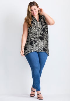 With close to 200 plus size sleeveless shirts and blouses sizes S to 6X (12-44), there’s a flattering style for every body! Discover our brands’ wide range of plus size tops. Click on sexy strappy camis, basic or trendy tanks, sleeveless tunics or embellished dressy tops. Shop colorful solids or pull from popular prints. These are the plus size tanks that fit your curves and your lifestyle, fulfilling your fashion needs. Top a cool pair of distressed plus size jeans, sleek leggings or an on-point skirt and be ready for a summer’s day at the office or an evening out with friends.