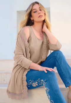 Instantly elevate your outfit in our Crochet Cardigan Sweater. The intricate pattern, open front, and relaxed elbow-length sleeves lend so much style to this piece. Wear it year-round with your favorite layers, like tank tops, camisoles, tees, and jeans. It’s also great with dresses and shorts, making the pairing possibilities endless.