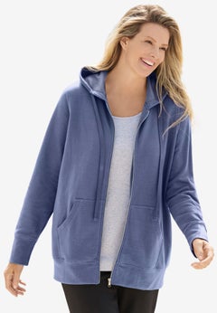 A great year-round option is the Long Zip Front Hoodie by ellos®. Stylish, yet casual, this piece comes in several beautiful colors and has a cardigan-like feel with the benefits of a hoodie. Pair it with lounge pants, jeans, athletic wear and more.