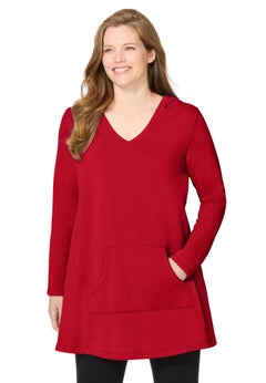 A great year-round option is the Long Zip Front Hoodie by ellos®. Stylish, yet casual, this piece comes in several beautiful colors and has a cardigan-like feel with the benefits of a hoodie. Pair it with lounge pants, jeans, athletic wear and more.