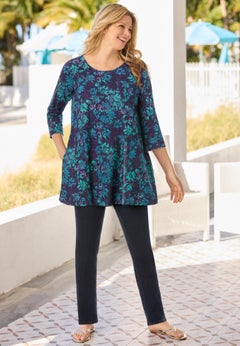 Looking for fashionable plus size tops or tees where sleeves can never be too long? We’ve got the perfect solution – ¾ sleeve plus size tops and tees! Never again find sleeves floundering in your food or work! These plus size tops and tees sized S to 7X and 12 through 48 fit your curves. Shop basic, embellished, printed or patterned tunics, popovers or button-front styles in woven cotton or knit blends. Designed by the most plus size brands available in one place. Shop the ¾ sleeve styles you love and stay top tier!