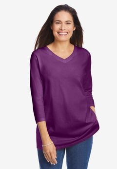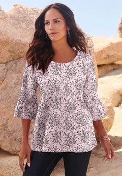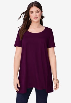 Shop over 500 cool plus size short sleeve tops and tees for when the mercury rises or you just feel haute! Popular styles feature signature design details like lace shoulders or sheer ladder inserts, various necklines and hem treatments, plus relaxed, comfortable body silhouettes. Our tops are covetable solutions for basic and on-trend wardrobe extensions. Shop a rainbow of hues or prints on soft cotton or blended knits. Fashion-forward short sleeve tops and tees compete for nights out or dressy office occasions. These plus size styles fit your curves and your size, available in S to 6X, 12 to 44.