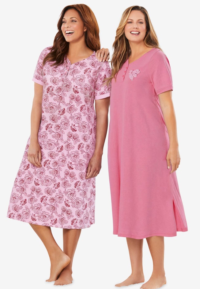 Double up on these top-selling sleepshirts with a three-button Henley placket that can be buttoned up or left open. Short sleeves and a longer length give just enough coverage but still provide comfort while you sleep. You’ll love the pure cotton knit fabric that’s extra breathable and washes like a dream.