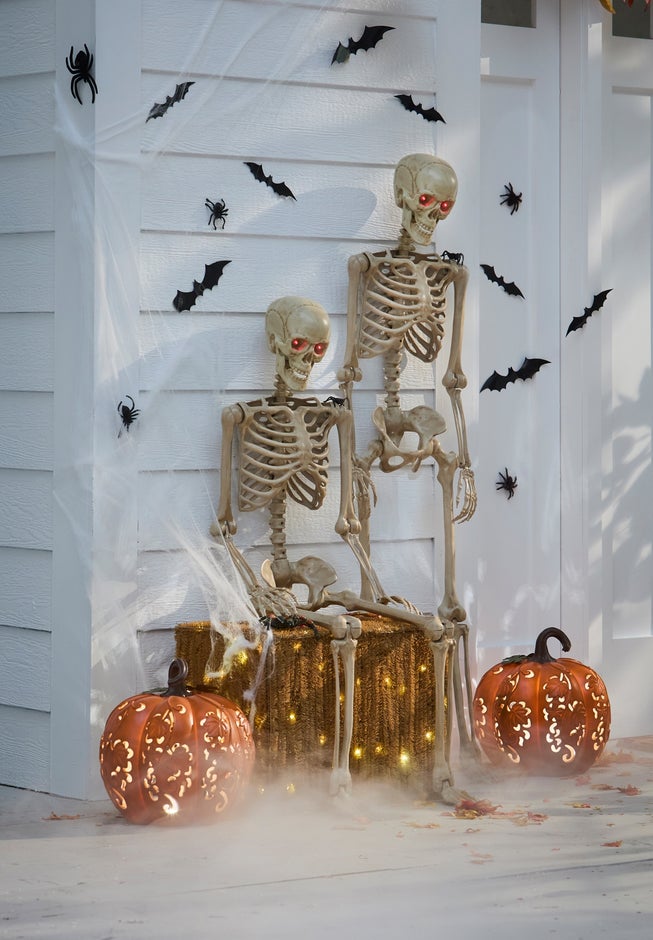 Get ready for a spooky season with the 5' Pre-Lit Life-Sized Skeleton, a must-have for any Halloween lover. This movable skeleton features adjustable arm and leg joints, allowing you to create a variety of poses. The glowing red LED eyes add an extra touch of eerie charm, making it the perfect centerpiece for your Halloween display. Whether standing tall on your porch or adding a spooky touch to your haunted house, this skeleton will leave a lasting impression on trick-or-treaters and guests alike.