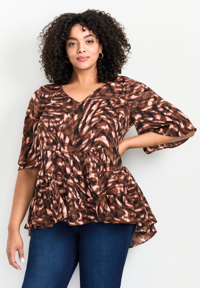 Unleash your inner fashionista with the Aly Tiered Top! This piece is your new go-to for effortless style, featuring a chic V neckline and flared sleeves that scream sophistication. Made from hammered matt satin, its tiered design flows with grace and flair—perfect for turning heads wherever you go!