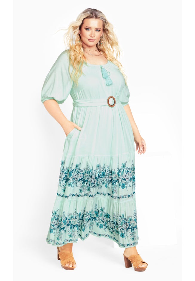Embrace your angelic side with the Angel Tiered Dress, a captivating blend of grace and charm! With its elastic waistline and elbow-length puff sleeves, this dress offers a flattering and comfortable fit. The neckline tie tassel detail adds a touch of bohemian elegance, while the tiered skirt and fit and flare silhouette create a whimsical and feminine look. Made from 100% viscose, this dress drapes beautifully and ensures a lightweight and flowy feel. Key Features Include:- Elastic waistline- Elbow length puff sleeves- Neckline tie tassel detail -Tiered skirt- Pullover style- Fit and flare- 100% Viscose- Maxi lengthPair this with strappy brown sandals and a tote bag.