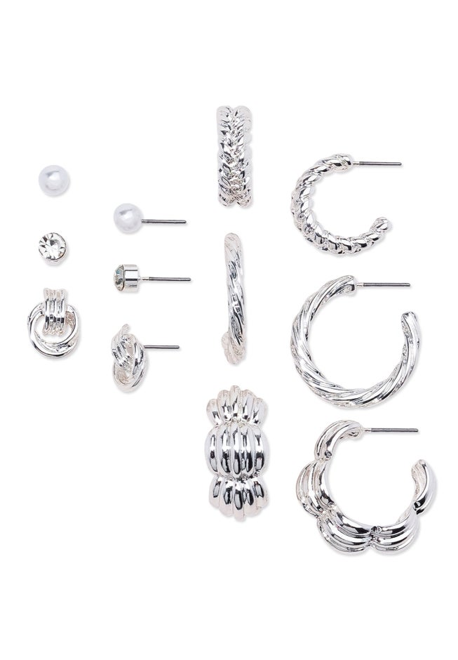 Versatile and effortlessly chic, the assorted stud and hoop earring set includes three pairs of classic studs and three pairs of stylish hoops—perfect for mixing, matching, and elevating any outfit. Available in your choice of gold or silver, this curated set makes accessorizing simple and stylish for every occasion. Rotate between studs for everyday polish and hoops for a bolder statement.