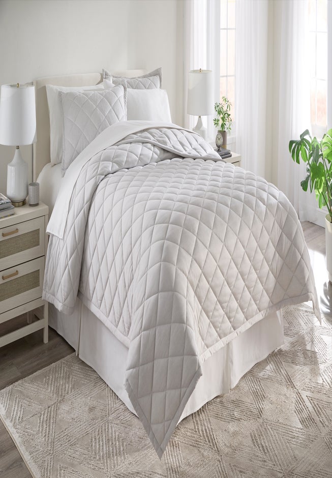 Crafted from ultra-soft polyester jersey, this quilt offers the breathable comfort of cotton with the durability of synthetic fibers. It’s machine washable for easy care, making it ideal for busy households and quick seasonal bedding changes. Imported.