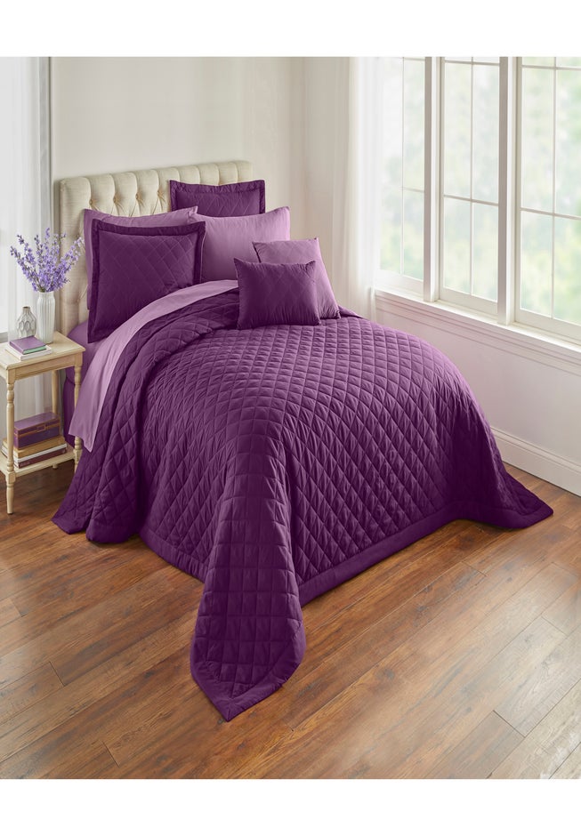 Oversized to drape all the way down to the floor, this softly quilted bedspread layers beautifully over your sheets and is perfect for higher platform beds. Detailed with classic diamond-pattern quilting or allover textured quilting for a cozy touch. The stitched borders along the edge give this bedspread an enhanced look. Its reversible style creates double the options for making your bed in varying colors and patterns.