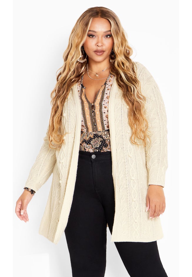 Cozy and comfortable, the Camilla Cable Cardigan will warm you up like no other cardigan can! Offering a lovely latte hue for versatile styling, this knitted cardigan ticks all the boxes this winter.
