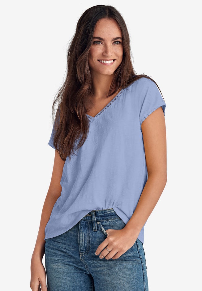 Delicate details take this basic tee to the next level. Your fave denim will look great with it.