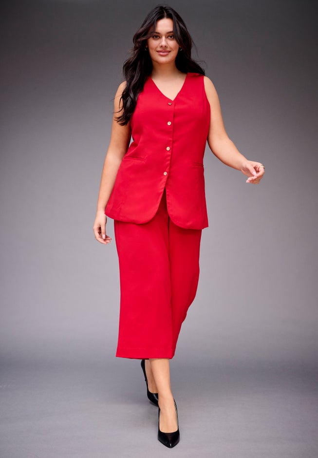Modern and refined, these cropped pants feature a clean, wide-leg silhouette that moves with ease. The tailored fit flatters the waist while offering all-day comfort. Perfect for pairing with everything from structured tops to relaxed knits.