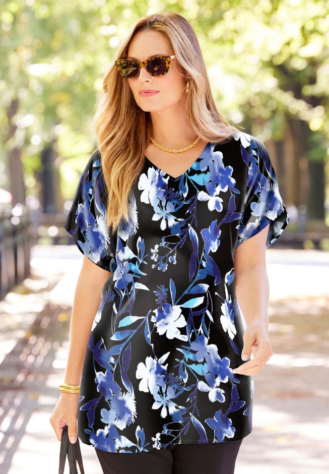 The perfect lightweight top to just throw on and go. And because it's crafted from smooth, fluid georgette, this easy short-sleeve style floats over your curves for comfort and confidence.