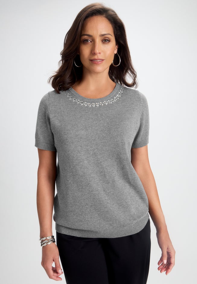 The Jessica London women's plus size Fine Gauge Collection Crewneck Shell is a fabulous, versatile classic that completes every wardrobe. Features a straight silhouette that flatters every figure and a crew neckline that conceals bra straps. Wear it on its own or as a twinset with the coordinating Jessica London Fine Gauge Collection Cardigan.