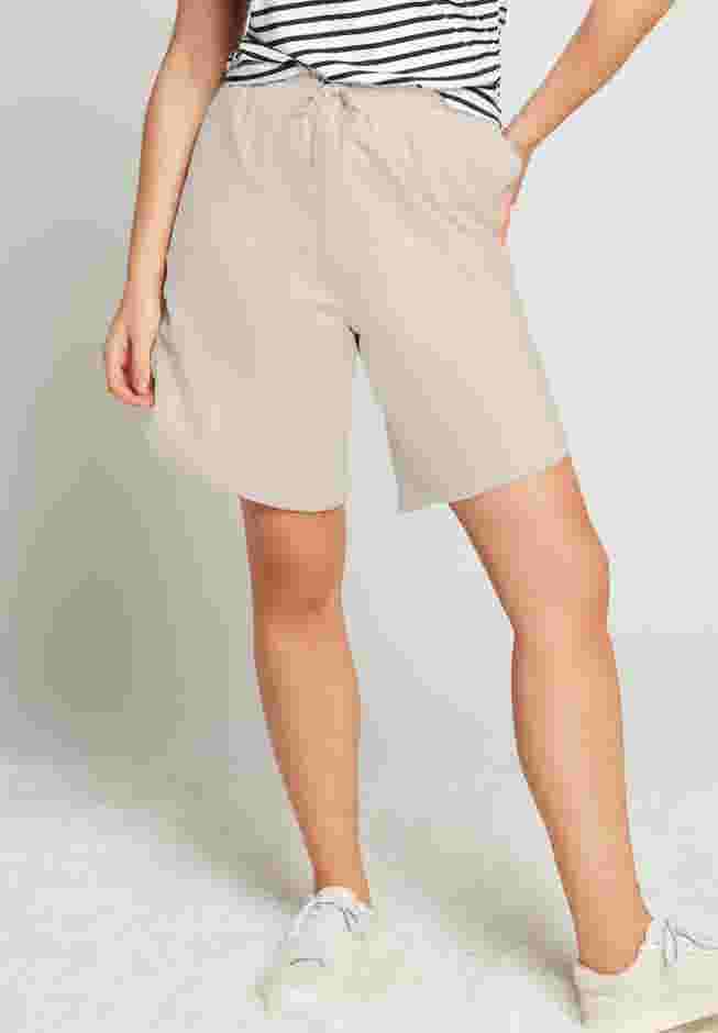 Featuring an elasticized waist with a functional drawstring, these summery Bermuda shorts prioritize comfort and style in equal measure. An elongated inseam provides thigh coverage that will keep you comfortable on long walks and busy days.