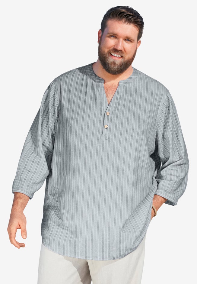 Let the summer vibes settle in with this island Gauze Mandarin Collar Shirt. Made from breathable cotton gauze, you're sure to stay cool throughout the summer and while enjoying vacations.