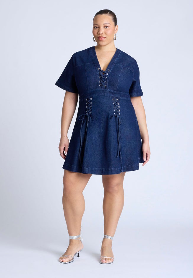 Lace Up Denim Mini Dress