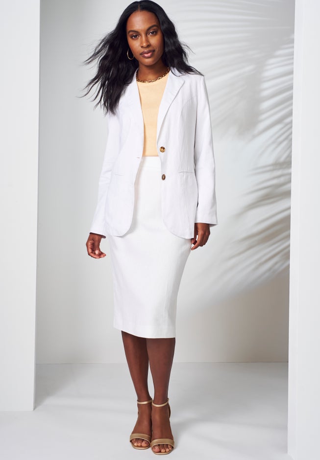 Keep your cool in this airy, breathable linen-blend blazer designed to fit your figure impeccably and add a polished finish to all of your outfits. The notched collar adds a fashionable finish, while shaping darts & vented sleeves with a button lend a feminine touch.