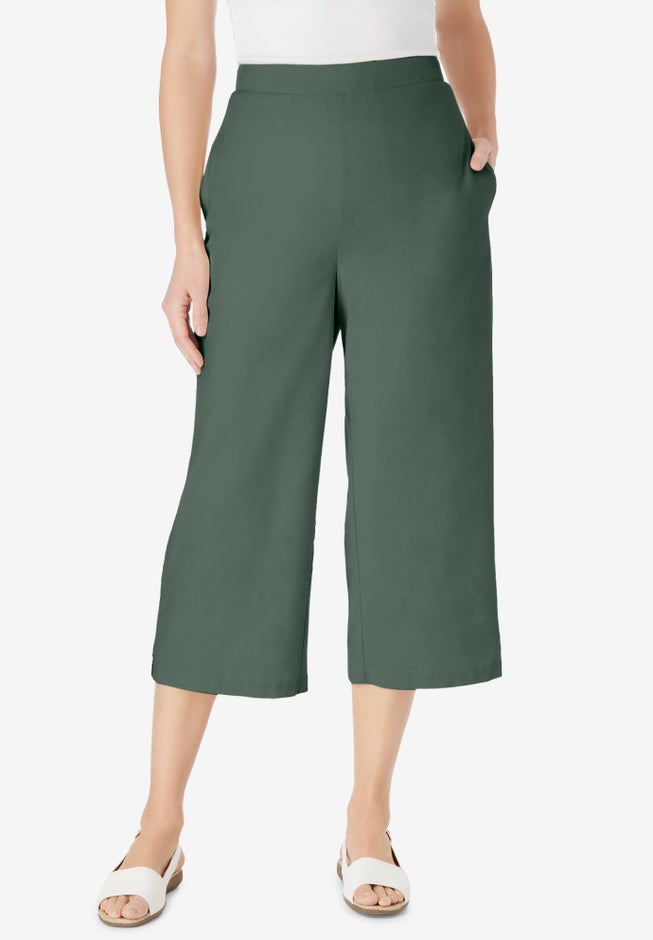 • Pull-on design with a smooth flat-front waist and elastic back for a customized fit.