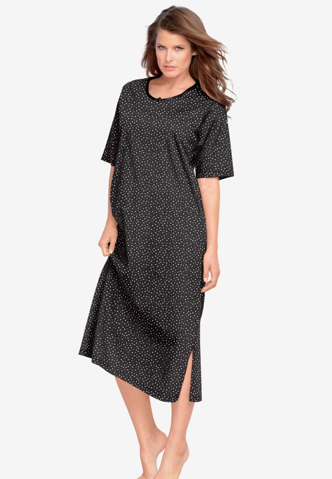 Sleep sound in our long, soft cotton sleepshirt. Scoop neckline with satin trim details and straight hem with side slits. 46" length.