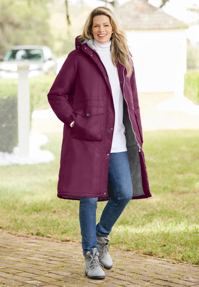 This versatile jacket features a detachable hood and adjustable drawstring waist for a customizable fit. The zip-front with Velcro closure offers quick coverage, while Velcro-tab cuffs help lock in warmth. Lightly insulated with polyfill and crafted from durable poly fabric, it's your go-to outer layer for staying cozy and protected — rain or shine.