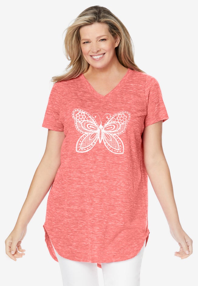 • Flattering tunic length with a high-low hem for versatile wear.