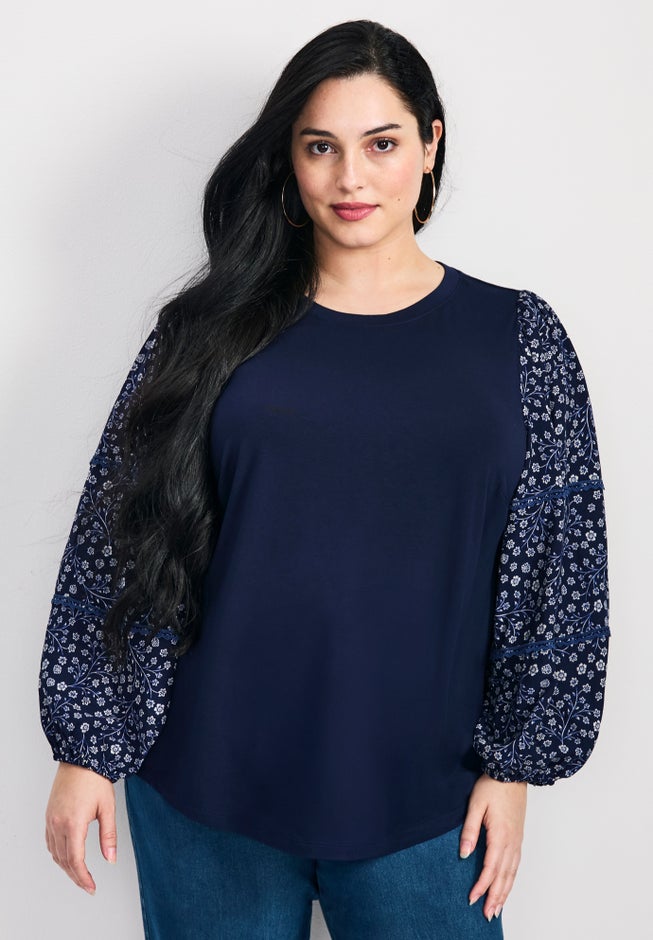 Introducing the Melody Mix Media Top—your new go-to for effortlessly chic style! Featuring a luxurious stretch viscose elastane jersey body and woven viscose 3/4 blouson sleeves with lace trim, this top is all about combining comfort with a touch of elegance. Whether you're headed to brunch or a casual day at the office, the Melody Mix Media Top ensures you do it with flair and confidence!
