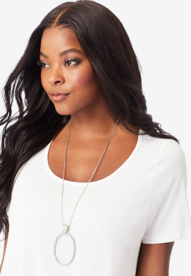 The best way to make a (chic) statement? A classic pendant necklace, of course. Features rhinestone pave stones and an oval drop.