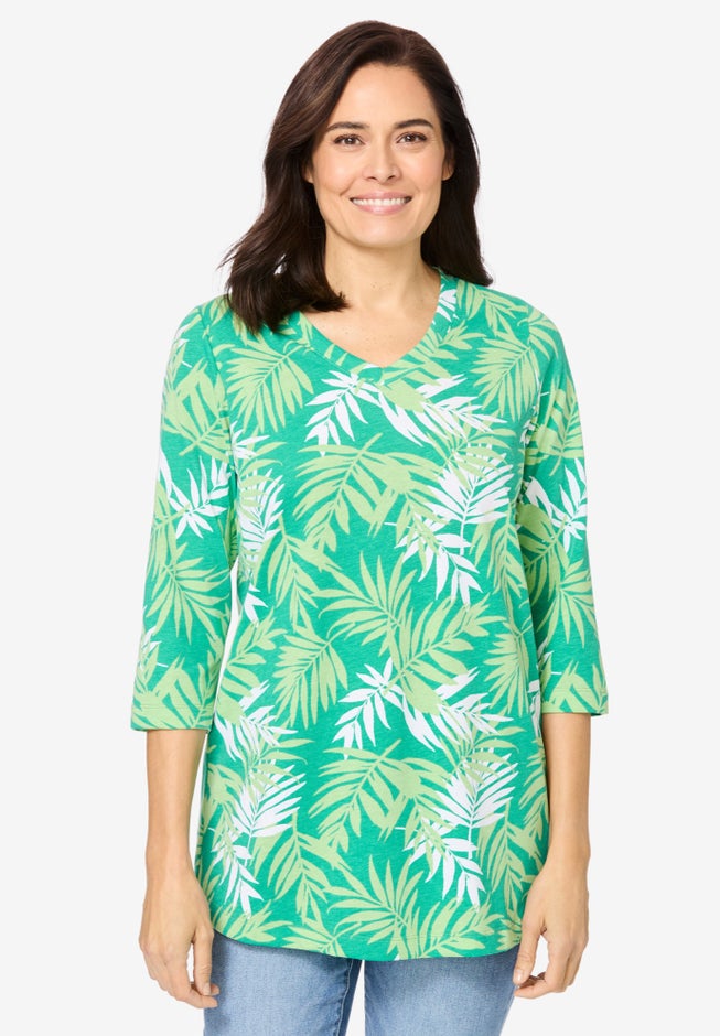 Perfect Printed Three-Quarter Sleeve V-Neck Tee