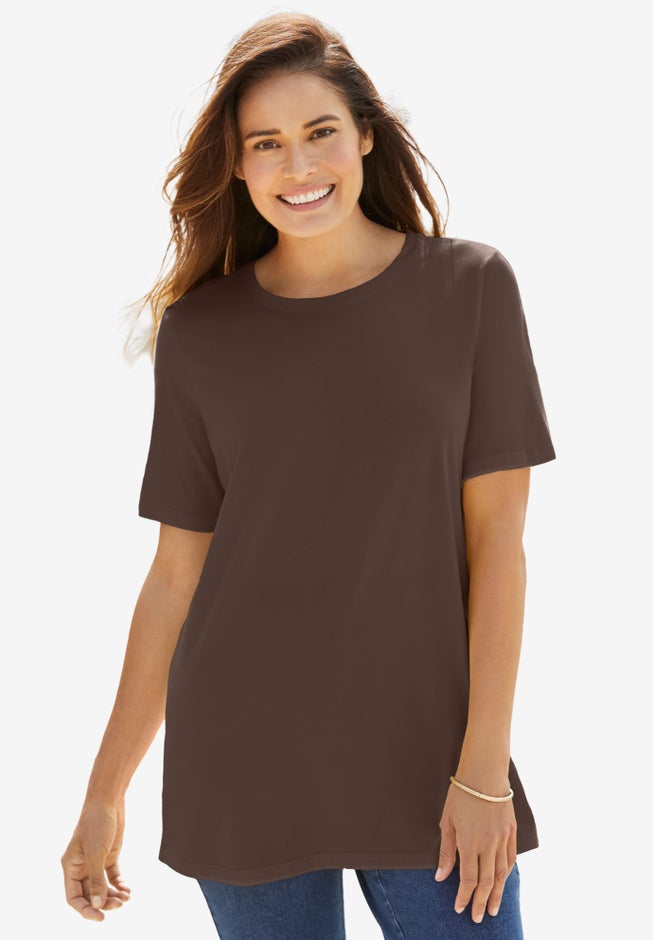 The Woman Within Perfect Tee is designed specifically for plus-size fit—so it drapes smoothly, never clings, and holds its shape wear after wear–which is why we call them ‘Perfect’. The relaxed silhouette is balanced for comfort. Wear it alone or layered—this is the foundational piece your wardrobe depends on. Available in regular and petite lengths for proportions that truly fit.