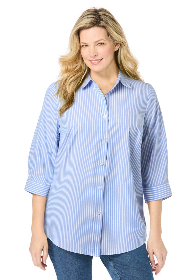 • Experience ultimate comfort with our best-loved perfect shirt, designed with a three quarter sleeve, relaxed fit and classic tunic length for comfortable coverage.