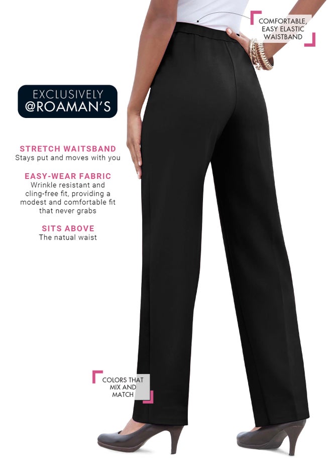 The Women’s Plus Size Classic Bend Over® Structured Pant delivers polished structure with pull-on ease in a relaxed straight leg silhouette. Crafted in crisp woven fabric with an elastic waistband, it offers a smooth drape that resists clinging and stays comfortably in place all day.