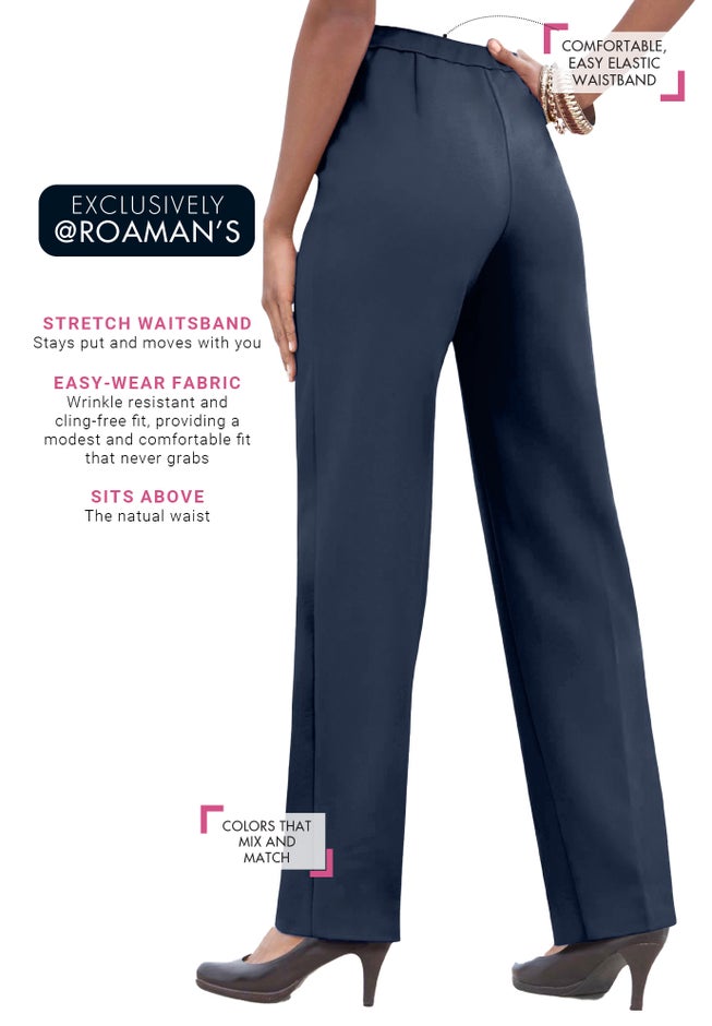 The Women’s Plus Size Classic Bend Over® Structured Pant delivers polished structure with pull-on ease in a relaxed straight leg silhouette. Crafted in crisp woven fabric with an elastic waistband, it offers a smooth drape that resists clinging and stays comfortably in place all day.
