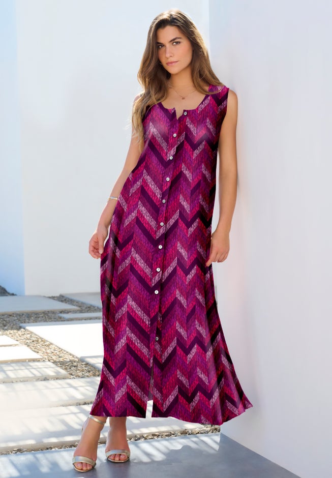 Plus Size Sleveless Hand-Crinkled Button-Front A-Line Maxi – Curvy Breezy Dress
