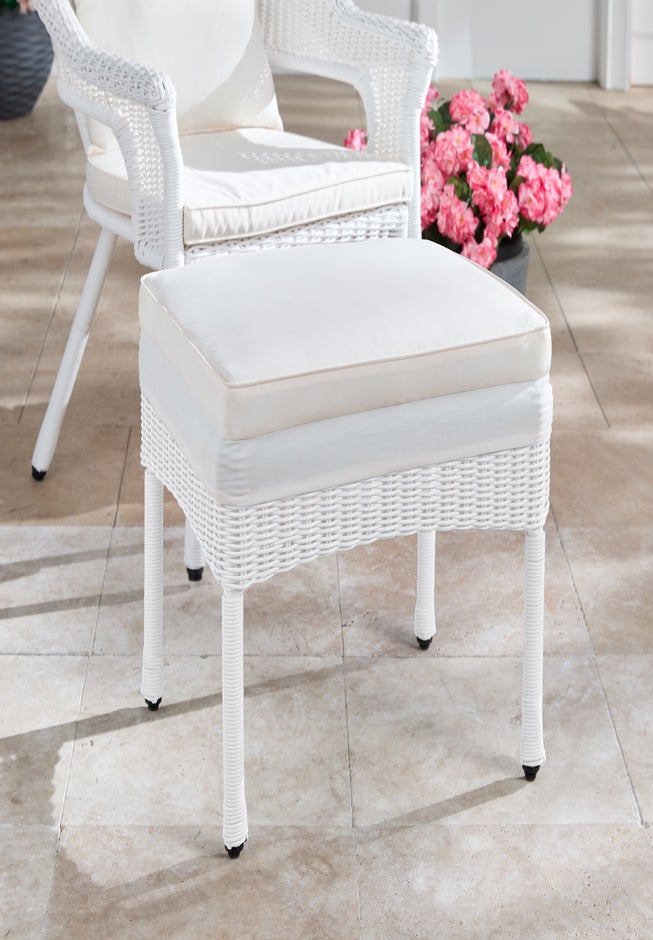 Crafted with sturdy steel and PE wicker with powder-coated legs, this ottoman is designed to resist weather and wear while maintaining its beauty. The soft polyester cushion is easy to maintain—simply wipe clean to keep your indoor or outdoor living space fresh and inviting.