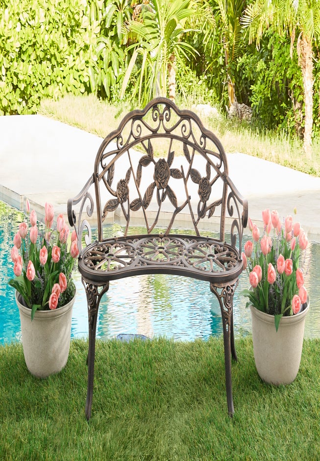 - Intricate rose-and-foliage design adds charm to gardens, patios, and walkways