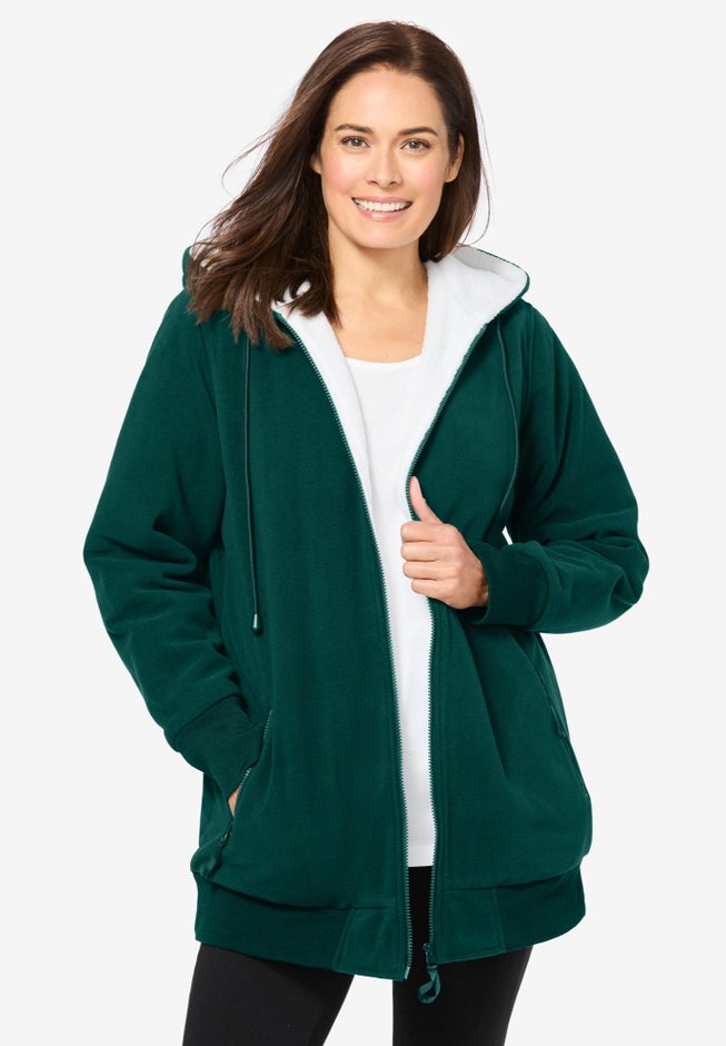 Whether worn over a tee or layered under a coat, this Sherpa Fleece Jacket is a plush, cozy must-have. It's lined and has a great, relaxed fit and roomy side zip pockets.